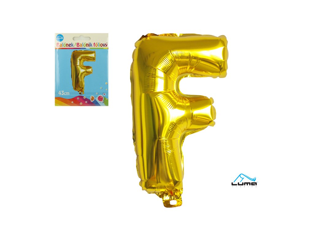 Balónek foliový písmeno F zlatý 43cm