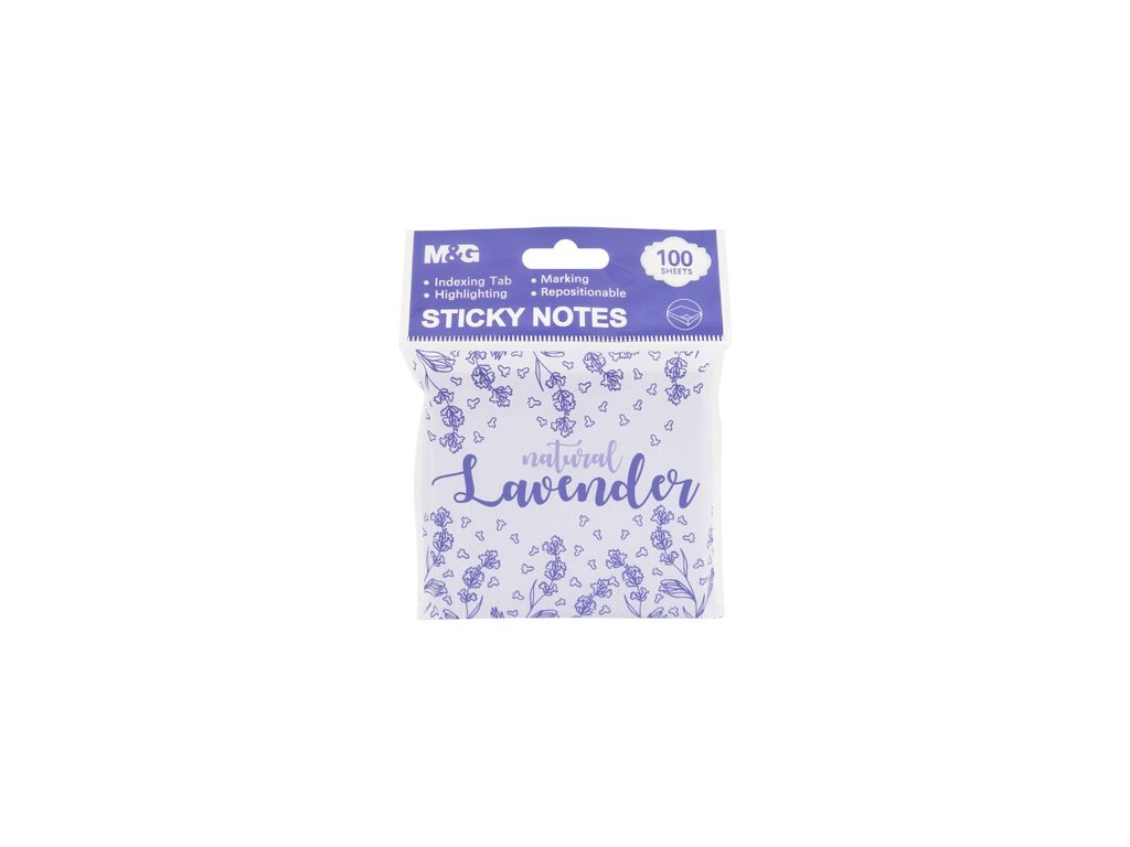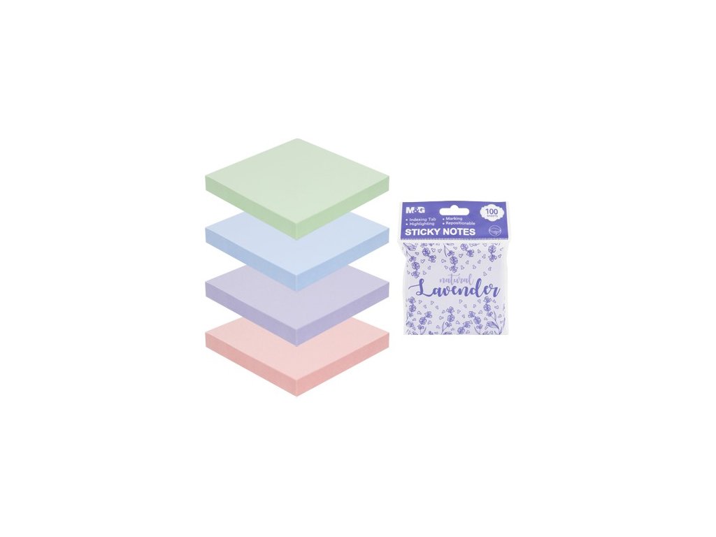 Papírové samolepící bločky Lavender v různých barvách v bloku. Rozměr 76 x 76 mm. Lepidlo umožňuje opakované použití lístků, přičemž nezanechává stopy, blok obsahuje 100 samolepících lístků bez potisku.Doplňkové parametry