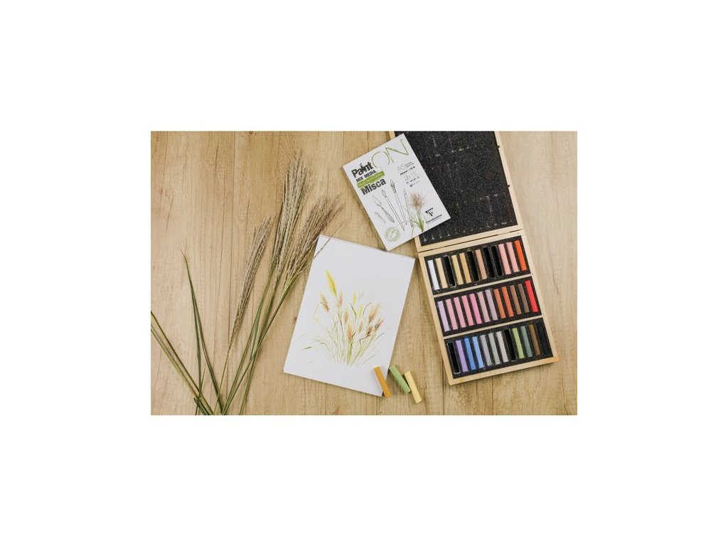 Umělecký blok Clairefontaine Paint On Misca má jemně hrubý, bílý papír z vláken sloní trávy, pěstované a sbírané v Nizozemsku. Vhodný pro suchou i mokrou techniku, výborné absorpční vlastnosti. Blok obsahuje 15 listů, 250 g. velikost A5 Jemná hrubost papíru dodává na výraznosti pigmentů a vytváří tak jasnější efekt. Tento víceúčelový papír je možné použít na techniky: tužka, křída, pastel, kvaš, fix, akryl. Blok je lepený po kratší straně. neobsahuje kyseliny pH neutrální certifikace PEFC jemně hrubýDoplňkové parametry