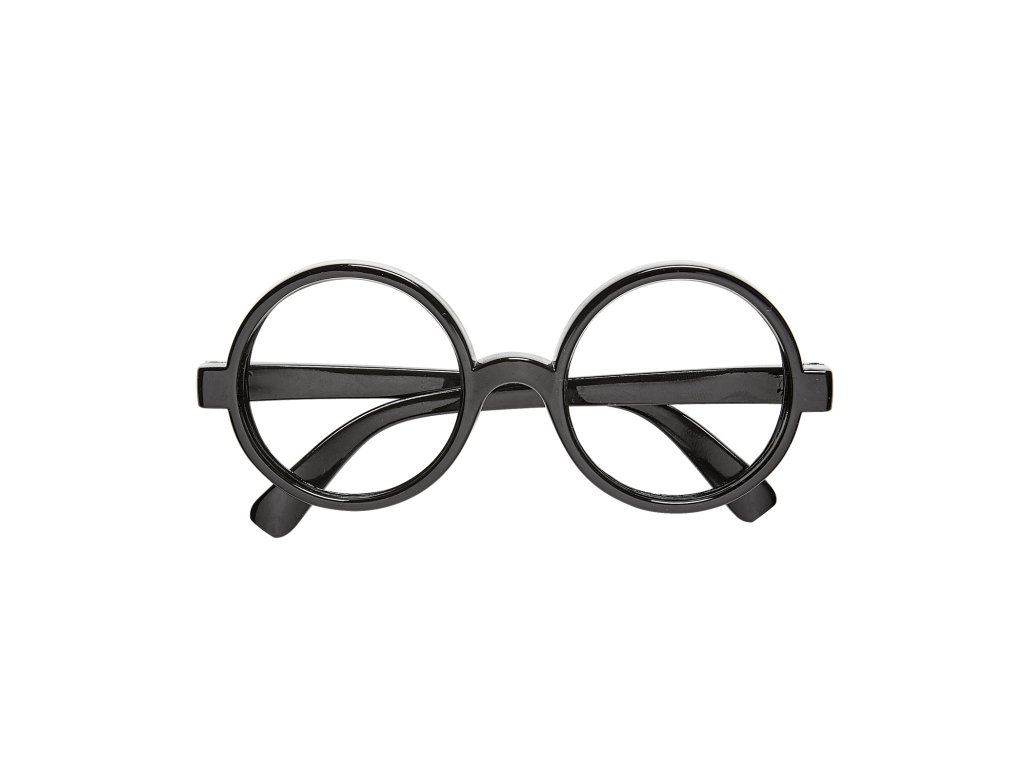 Karnevalový doplněk kulaté černé brýle bez skel.Vhodné na pana profesora či učitela nebo na studenta,