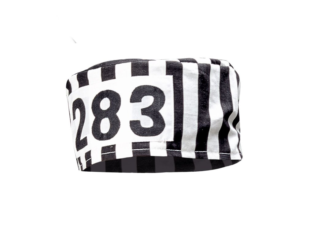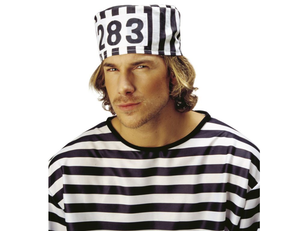 Látková čepička vhodná ke karnevalovému kostýmu vězně. Obvod hlavy: 59 cm Materiál: 100% polyesterDoplňkové parametry