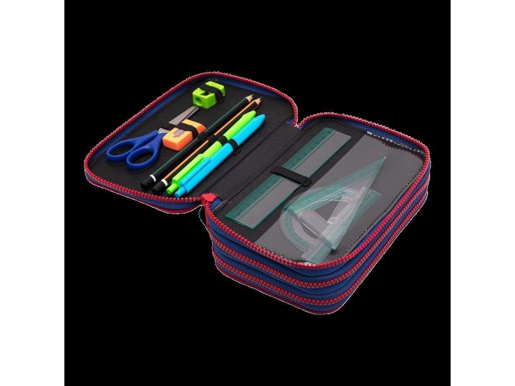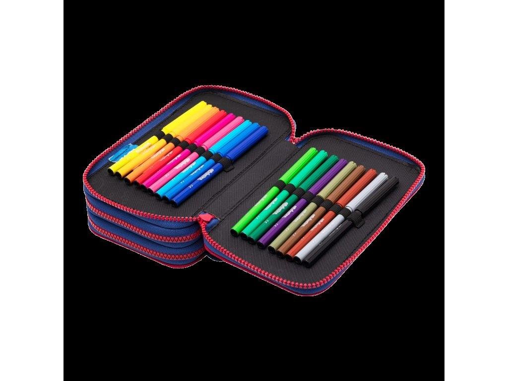 Třípatrový penál je nepostradatelnou výbavou každého školáka, jelikož pojme všemožné psací potřeby i další drobnosti. Díky chlopním s poutky je všepřehledné. Stěny jsou vyztužené a tak jsou všechny tužky i pastelky chráněné před lámáním. Penál se prodává včetně výbavy. náplň: 18x fixa, 18x pastelka, 1x nůžky, 1x guma, 1x ořezávátko, 2x tužka, 2x propiska, 3x pravítko rozměry: Š 14 x V 21 x H 6 cm balení: 1 ksDoplňkové parametry