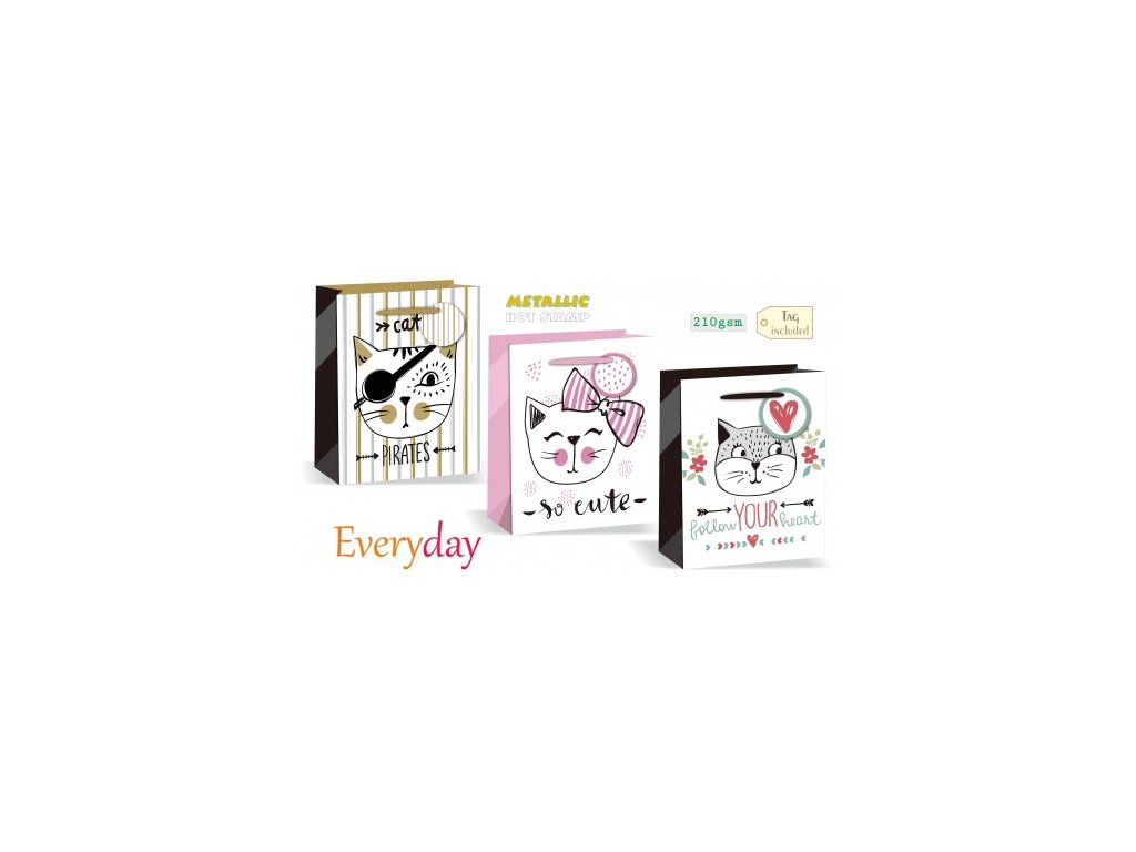 210 g / m2 papír. Včetně kartonového štítku. 180x230x100mm. Matný povrch.