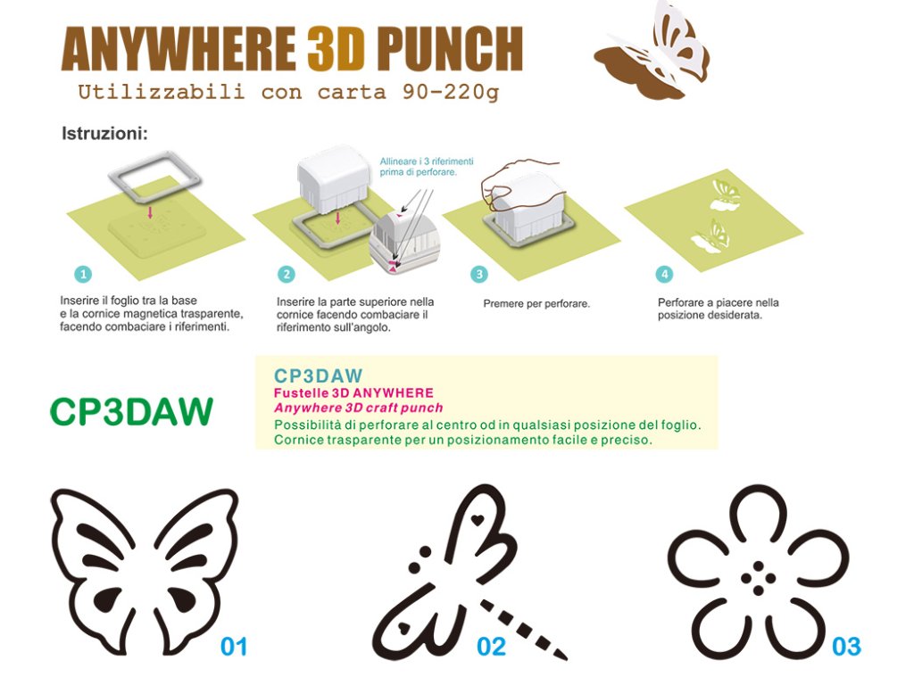 Možnost děrování na střed nebo v libovolné poloze . Průhledný rám pro snadné a přesné umístění magnetický rámeček pro snadné umístění raznice Lze použít s papírem 90 - 220 g Tvar: Motýl Velikost výseku cca 4x4cmDoplňkové parametry