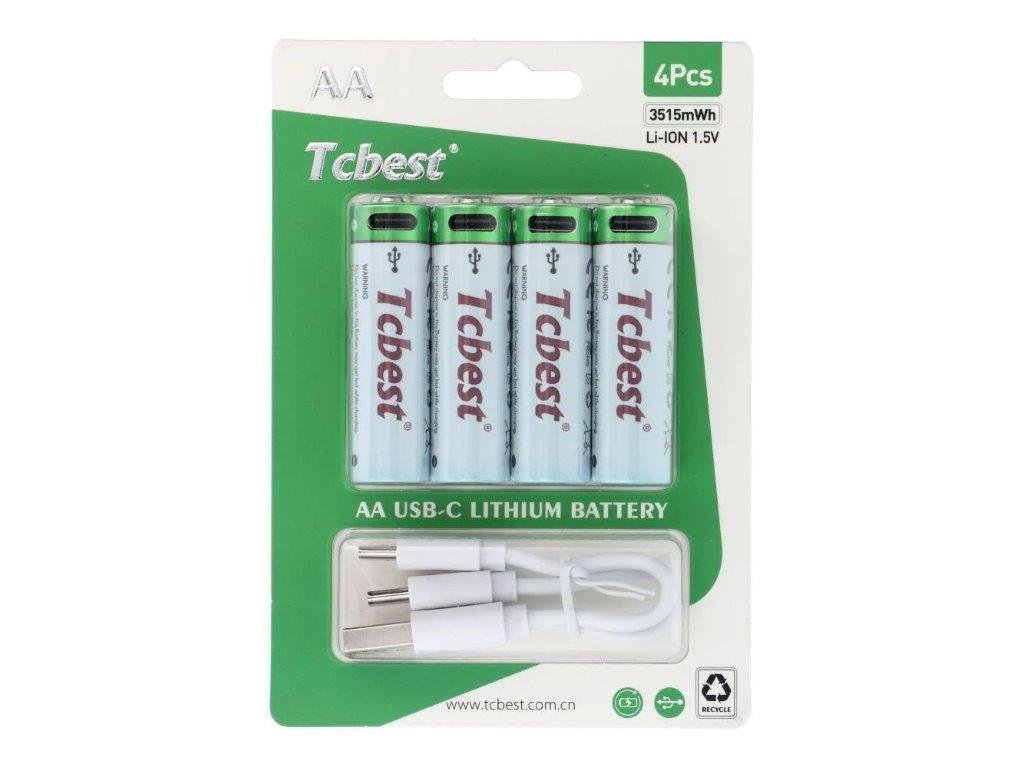 4x baterie TCBEST AA 950 mAh s USB -C konektorem,