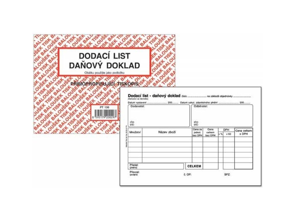 Dodací listy A6 s DPH, samopropisovací PT 130