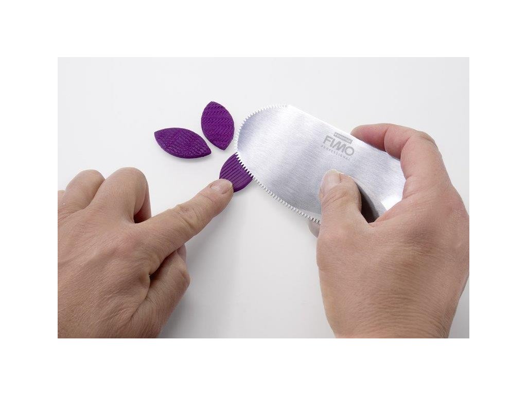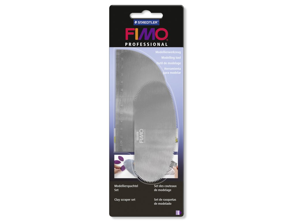 FIMO proffesional speciální špachtle sada 2 ks Kvaltítní design vyšší třídy, vyrobeno z nerezové oceli, ideální pro vytvoření a zdůraznění vzorů. Vhodné pro tvarování, vyhlazování a přeměření částí výrobků. Jednoduché čištění nástroje. Sada obsahuje: zubatou špachtli hladkou špachtliDoplňkové parametry