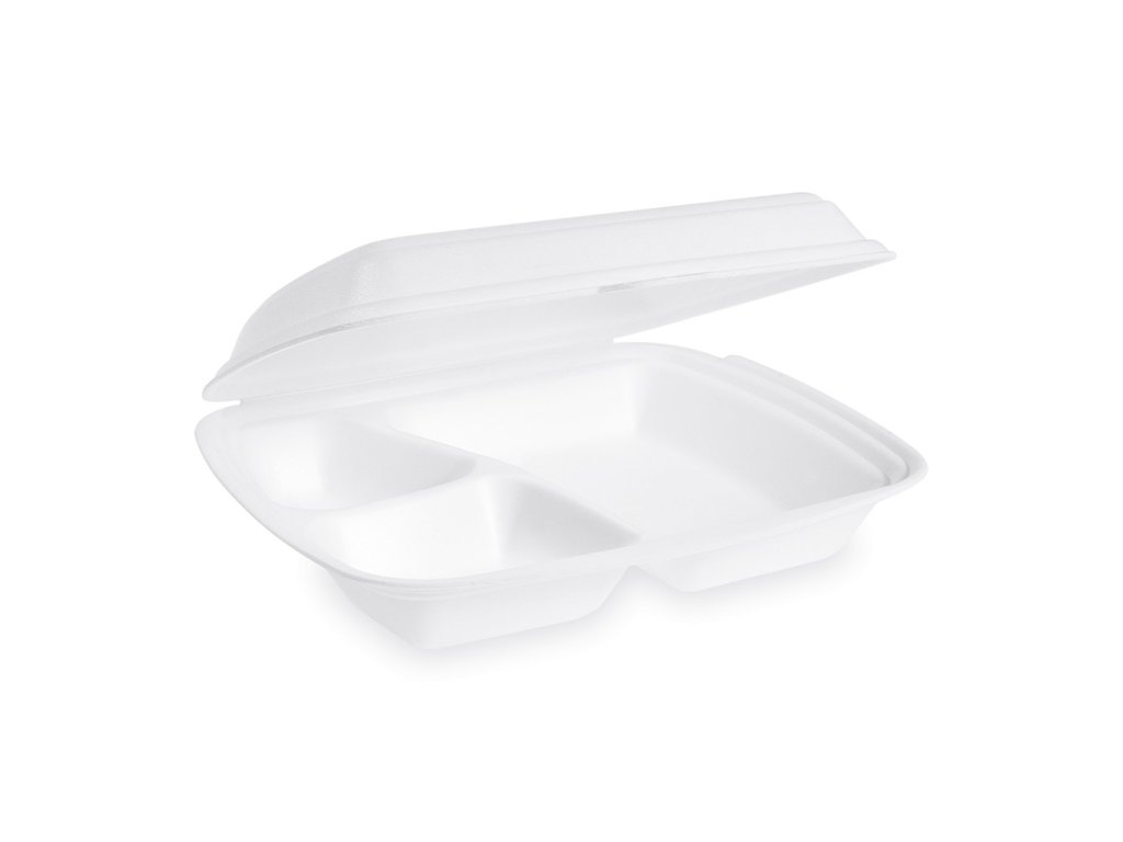 Menu box s integrovaným víkem vhodný k odnosu teplých jídel. Memu box 3-dílný 241 x 207 x 69mmDoplňkové parametry