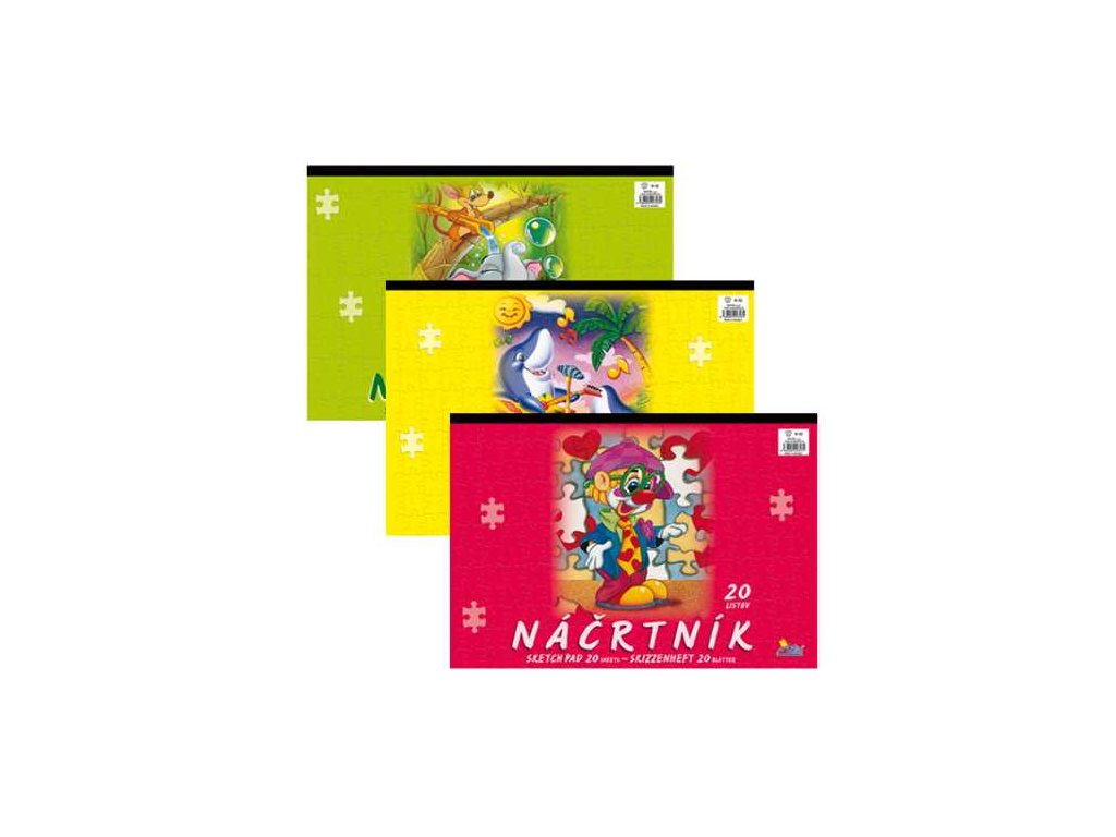 Lepený blok A3 z náčrtníkového papíru 90g/m2, 20 listů, lepený po delší straně, s černým knihařským plátnem.