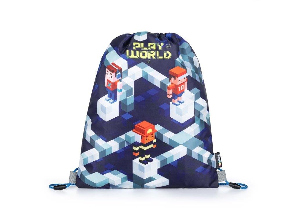Sáček na přezůvky s motivem Playworld. Uzavírání stažením šňůrek, možnost nosit i na zádech nebo připevnit ke školnímu batohu. Materiál 100% polyester. Rozměry: 37 x 30 cm Váha: 50 g