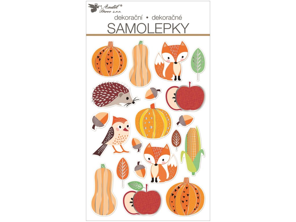 Samolepky dekorace, mix barev a tvarů Dekorativní samolepky vhodné jako doplněk při výrobě různých pozvánek, přání a dalších různých kreativních výrobků. s podzimní tématikouDoplňkové parametry