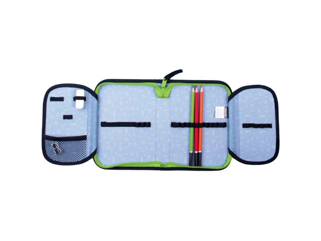 Jednopatrové penály mají velkou kapacitu k umístění psacích potřeb.Přesně 24 pevných gumiček různých velikostí slouží k pohodlnému uložení pastelek,