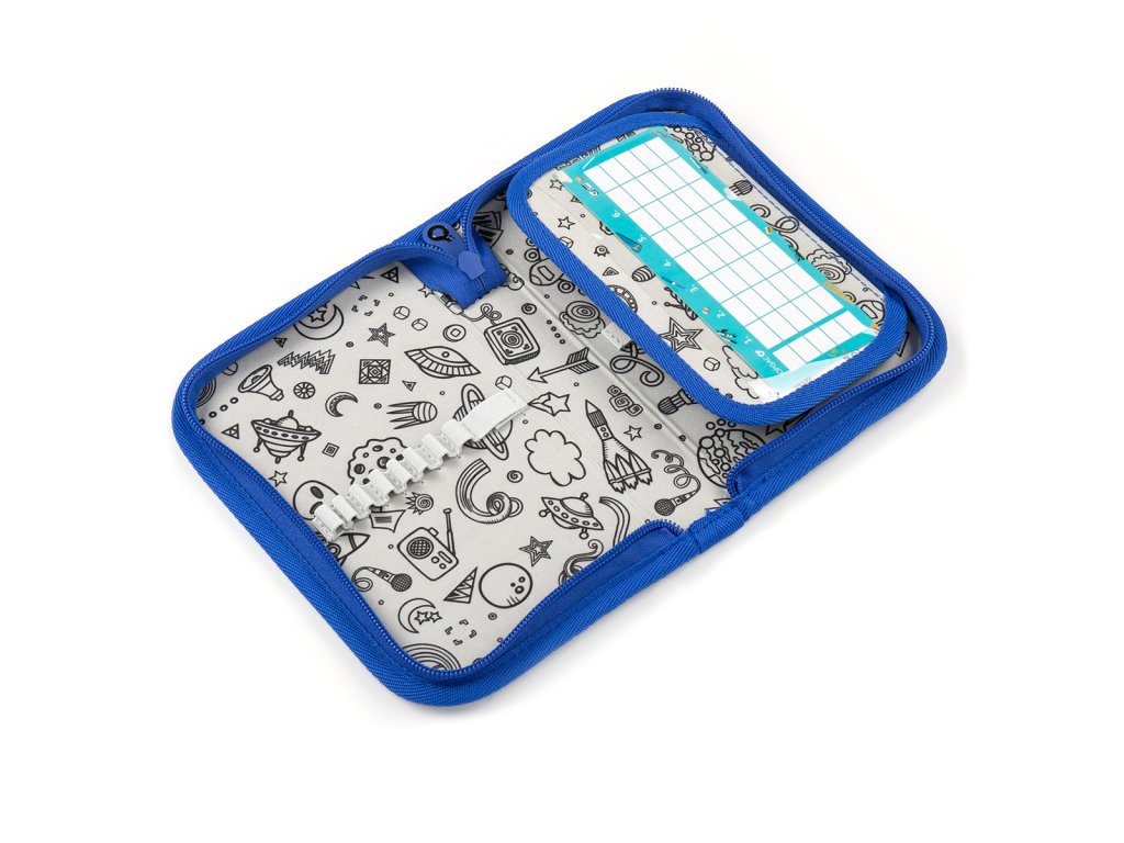 Jednopatrové školní pouzdro je vybaveno osmnácti klasickými gumovými úchyty na pastelky a fixy, čtyřmi širšími úchyty na pravítka, kružítko či nůžky a dvěma většími úchyty na gumu a ořezávátko. Pod klopnou z průhledné folie najdete rozvrh hodin, ale třeba poslouží i na taháky :-) Penál je polstrovaný, takže spolehlivě ochrání všechny psací potřeby vašich dětí. Zapínání je řešeno kvalitními zipy s velkými taháčky, které umožňují dětem snadnou manipulaci s pouzdrem.Doplňkové parametry