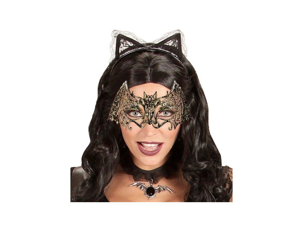 maska, netopýr, jedna velikost - metal netopýří maska vícebarevný třpyt - metalová maska, vícebarevný třpyt