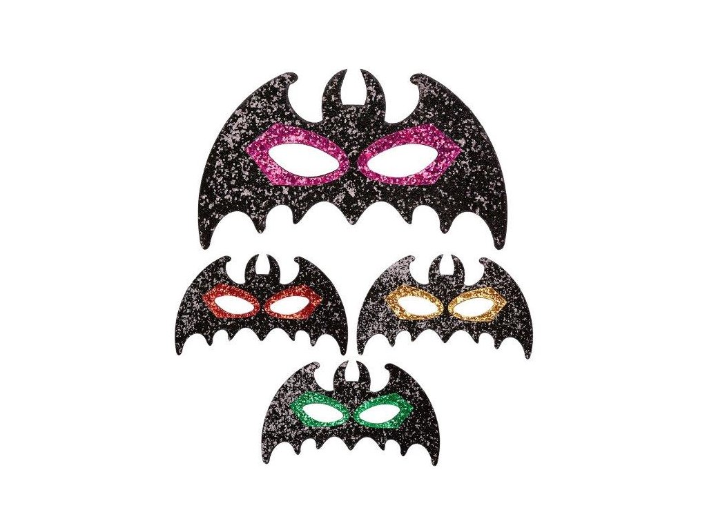 Maska Škraboška Netopýr glitrovaná 4 barvy papírová podlepená škraboška Netopýr glitrovaná ve 4 barvách zelená, fialová, zlatá a červená. Škraboška ve tvaru netopýr je vhodná nejen na maškarní ples, ale i na Halloween párty. Škrabošky značky Widmann.Doplňkové parametry