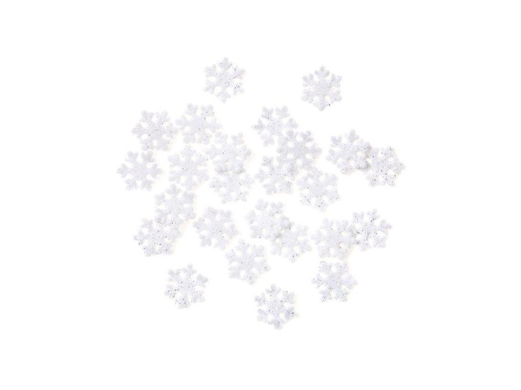 Sněhové vločky se třpytkami, bílé, 2,4 cm, 24 ks Bílé sněhové vločky se stříbrnými třpytkami jsou skvělým doplňkem, který podtrhne zimní charakter vaš projektů. Jsou ideální pro vytváření vánočních ozdob, věnců a dalších domácích dekorací. Perfektní jako doplněk ke stolnímu aranžmáDoplňkové parametry