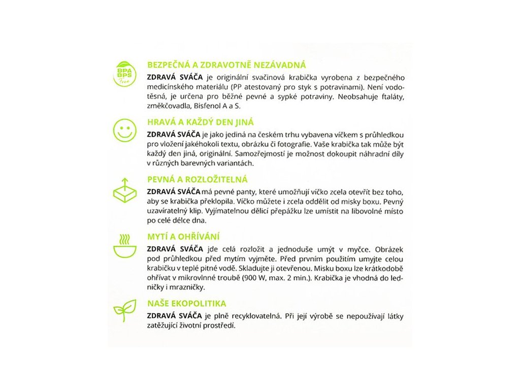 Svačinový box ZDRAVÁ SVÁČA - Unikátní český výrobek od výrobce Zdravé lahve,který je vyroben z polypropylenu určeného pro lékařské a